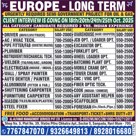 Looking for abroad assignments and the latest Gulf job vacancies? You’re in the right place! At Assignments Gulf Times, we bring you daily updates on genuine job opportunities across Saudi Arabia, Qatar, UAE, Bahrain, Kuwait, Oman, and other GCC countries. We also share reliable vacancies for Iraq, Russia, Europe, and Africa—all sourced from government-approved Indian recruitment agencies.