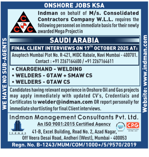 - Email updated CVs, credentials, and certificates to 📧 welder@indman.com